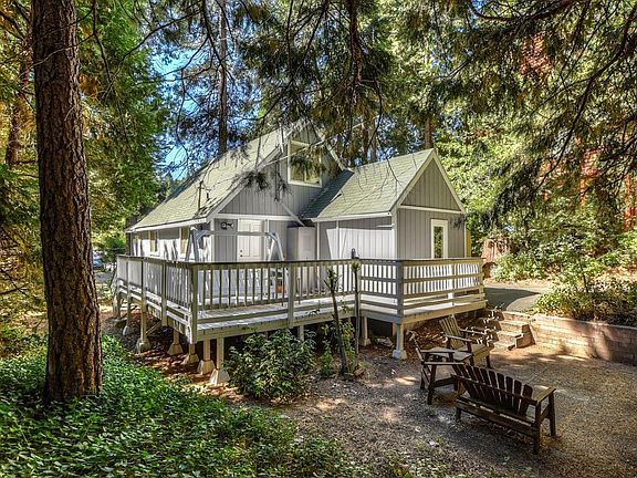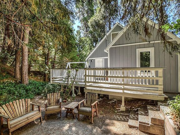 Cutest little cabin close to shopping and movie theater. Spacious deck surrounded by trees. Level parking and entry. Master retreat on the main floor along with living areas and laundry.. so no steps, just come on up and give your knees a break! Great little spot with huge trees, seasonal stream, acres of forested greenbelt and level yard that is already partially fenced. you wont believe how darling this cabin is until you see it for yourself! With the level yard and huge deck, you can really make something super nice! If you've been waiting to find something in the Little Bear tract of Blue Jay.. this is it!