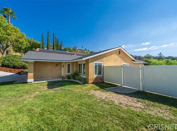 Stunning Views of the Santa Clarita Valley! If you are looking for a wonderful single story view home, this is the one for you! Located on an excellent cul-de-sac, this large corner lot is very private with a great size front and back yard. Large windows in the living room framed by plantation shutters let in beautiful light and still provide a perfect frame to the stunning views outside. The room is bright and airy with fresh paint, high ceilings, and laminate flooring. Walking into this 3 bedroom 2 bathroom property, you will immediately feel at home! Near the living room you will find your open kitchen. The kitchen features stone counters, newly updated cabinets and stainless steel appliances. The kitchen is nice and open to the dining area as well as the family room featuring a gas fireplace and a slider with access to the stunning backyard. Each bedroom is light and bright with fresh paint and views from each and every window! Just when you think that the views could not get any better you check out the backyard! An entertainers dream, there is a large covered patio perfect for hosting a barbeque with your family and friends and a built in firepit. Beyond the covered patio there is a large yard with views of most of Santa Clarita Valley! 2021 Roof! No Mello-Roos and No HOA!