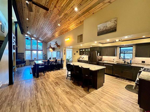 THIS BEAUTIFUL STUNNING STUCCO HOME IS MOVE IN READY!!! It is nice and private nestled within this 3.59 treed acres. Arriving at the home there is a concrete driveway and an abundance of additional parking for your boat and outdoor toys. There is also a carport and three big wood sheds that are filled with firewood. An attractive new double wrought iron gate and fencing that covers the property all along the road and more is sure to catch your eye. The beautiful landscaping in the front and fenced backyard has a variety of different perennial plants incorporating a sprinkler and drip system. When you go to the large entrance it leads you right into the over sized great room with the blue pine vaulted ceilings with large windows (great for natural light). On your right is a beautiful newer updated kitchen with granite counter tops, cabinets and new appliances. There is also a gorgeous custom wood top L shaped bar that is unlike any other that separates the kitchen from the living room. The seperate dining room has a very nice lighted pantry with deep drawer that pull out. There is a wood stove tucked in the corner that will heat the entire house in the winter. Walk down the hall from the kitchen and there are two good sized bedrooms and a full size bathroom. At the end of the hall is the main bedroom with its own private bathroom and walk in closet and door that leads you out to a little private courtyard. Leading up the stairs from the great room is a good size office, bedroom and bonus room including deep closets for more storage plus a very big unfinished attic space perfect for more storage. Off from the kitchen there is a nice sunroom with lots of light. The mudroom/ laundry room w utility sink and half bath that is conveniently located between kitchen and the two car garage. The garage has two other big separate rooms that are attached to it. One of the rooms has a garage door for additional parking. The home also has new SOLAR panels, plumbing, furnace, floors, toilets, windows and deck. The heat is propane forced air, swamp cooler and on demand hot water heater. Now we go to the fenced in back yard that looks like the landscape from a Homes and Garden Magazine. There is a big deck (recently stained) with lots of space, hot tub, KOI POND, fire pit and horse shoe pit . This is a perfect backyard for entertaining or enjoying the quiet. The backyard is very well taken care with a sprinkler system and lots of grass and more plants and trees with park like atmosphere.