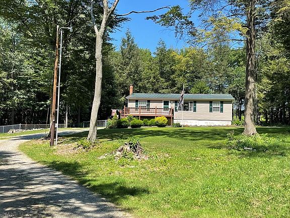 If you are looking for a more private setting, this meticulously maintained property that sits back off of the road on approximately seven beautiful acres is the one for you. House is perfect for entertaining family and friends, the kitchen is open to the dining and living rooms, and the basement has a bar area with half bath that is sure to please the guests. The fire pit in the back yard is the perfect center to make mountain pies while enjoying all the wildlife. Fenced area for pets, detached garage to store toys. Many newer updates to this property, new roof in 2015, remodeled kitchen and bath, new hot water heater 2016, new laminate wood flooring throughout upstairs. Seller is subdividing land. House/garage will be on approx 7 acres. Seller would consider selling additional acres.