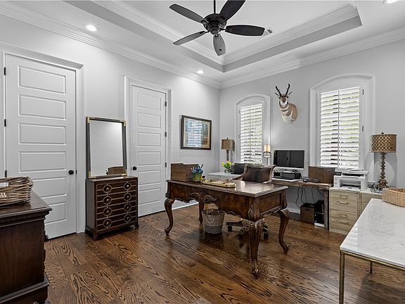 Extraordinary custom home in the prestigious White Oaks neighborhood is a show stopper! Elegant living areas built for entertaining family & friends. A beautiful new iron arch front door welcomes you into a gorgeous foyer. This stunning 5 spacious bedroom, 5 luxurious bathroom home is a perfect blend of luxury, comfort & style offering exceptional indoor & outdoor features. Primary suite offers a large bedroom with built in dresser, bathroom with dual vanities, large custom closet, & home gym/office by the primary bath. 2 additional ensuite bedrooms on the main level. Newly remodeled half bath too! Gourmet kitchen boast a large center island, custom cabinets, double ovens, 2 wine fridges, 6 burner gas range with griddle & 2 large walk-in pantries. Huge laundry room. A wide stairway leads to the 2nd level that includes 2 additional bedrooms, 2 full baths, an incredible home theater/game room. There is an additional sitting area, craft room & tons of attic space. Spray foam insulation.