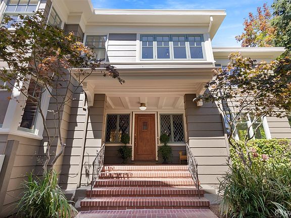 Nestled off the main road in the serene Claremont Court cul-de-sac, this exquisite 4-bed, 3-bath home blends timeless charm with modern luxury. Designed by renowned architect Walter Ratcliff, the residence features beautiful woodwork and period details, creating a warm atmosphere. Gracious formal dining & living rooms flow to a lush yard, perfect for entertaining. The updated eat-in kitchen is a chef's dream with high-end appliances & thoughtful design. Modern upgrades include solar panels, radiant heat, updated electrical, windows, & seismic optimizations, preserving architectural integrity. Upstairs, find four bedrooms, including an expansive primary suite w/ a large ensuite bathroom, walk-in closet, & sunlit porch. The finished basement offers versatile space for an office, playroom, or media room. The garage provides extra storage or potential ADU space. Just a short walk to Monkey Island Park, Emerson Elementary, College Ave shops, & with easy highway access, this home has it all.