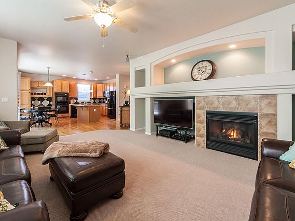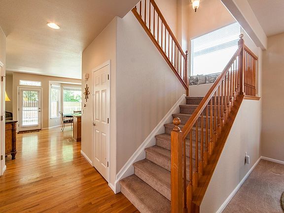 Must see family home situated on a quiet cul de sac w/a large open space at end. Open floor plan boasts 10-ft ceilings with large gourmet kitchen with granite countertops and backsplash, large island and spacious separate eating nook, convenient desk area, double oven w/convection and newer appliances! A main floor bedroom has been converted to an elegant study, and the bright spacious family room completes the main floor! Upstairs is the master with 5-piece bath and huge walk-in closet, add'l bedrooms, the laundry room, and spacious loft with balcony from which breathtaking mountain views can be seen. Expansive maintenance-free deck w/awning and built-in seating in back. Finished basement with bedroom, bathroom, kitchenette, and large play room. Tankless HE water heater offering endless hot water, whole house humidifier, new cordless blinds and new designer paint throughout interior. Nest SMART Thermostat. Active Radon Mit Sys w/25-year transferable warranty. THIS HOME HAS IT ALL!