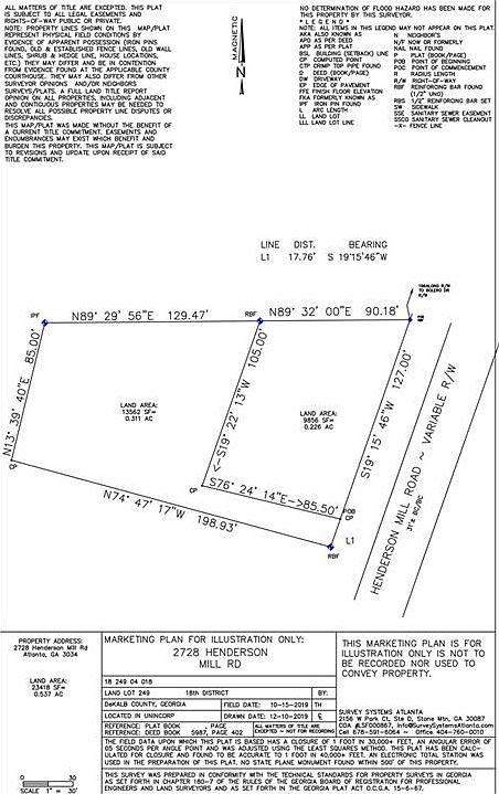 2728 Henderson Mill Rd is being sold as a bundle with the adjacent lot at 2736 Henderson Mill Rd, .537 acre total. 2736 Henderson Mill Rd also listed separately (FMLS#6712285). Total price for both lots is $149,000. Surveys of each lot are in RDocs. Near Henderson Middle School & Henderson Mill Elem. Inside I-285. Less than 2 miles from Mercer University Atlanta campus. Nearby Northlake Mall was sold to a developer and is slated for redevelopment by Emory University, which will be a game changer. Zoned R100. New construction in the area is selling for $600k to $700k+.
