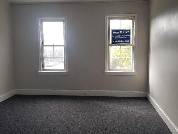 Cute Modern 2 Bedrooms 1 Bathroom 2nd floor Apartment open floor plan with nice kitchen, stove, fridge, microwave, freshly painted, carpet in bedroom, and stacked washer/dryer in Apartment. Close to shopping, Bus Lines and Johns Hopkins Hospital. Rent is $1050.00 Rental and Credit Reference required and a non refundable application fee. Private entrance in front of building Tenant pays BGE, Water Included