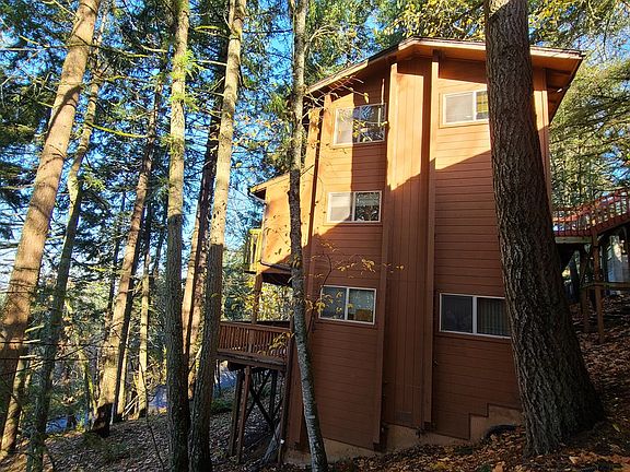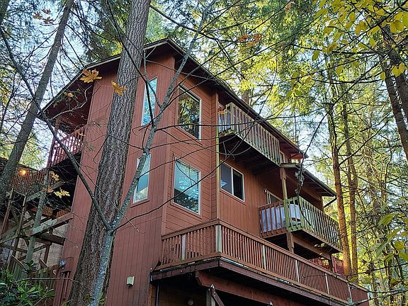 Great 3 story home has newer decks~filtered views~wood fireplace~living rm/kitchen/dining/1/2 bath on upper main level~master suite on middle level~Corian Counter tops/tile backsplash in kitchen~3 sliders to multi decks with filtered views~Lots of storage~great separation of space with lower private living area W/separate entrance~currently rented for $850/month~low $359 a year dues PLEASE DRIVE BY BEFORE SCHEDULING A SHOWING, UNIQUE LOCATION, NO YARDCARE