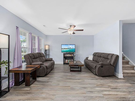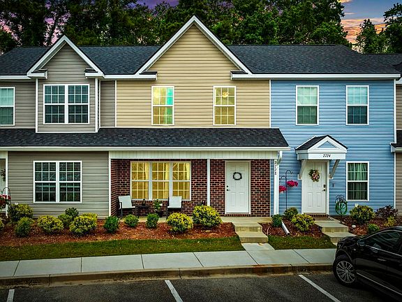 Welcome to a meticulously maintained, 2022 townhome in lovely Midtown Village. Located just three miles from Historic and Charming - Downtown Conway, known for its vibrant community, festivals, holiday decorating, and walkable shopping and dining! This affordable home has 3 bedrooms, 2.5 bathrooms, a front porch, and covered, private back patio. The brick veneer and front porch invite you to sit a spell and enjoy the sunny SC days! The home features 5 inch baseboards, trimmed and crowned window and door frames, comfort height toilets, luxury vinyl plank on the main floor and also backs to woods. The kitchen's granite counters, work island, ample cabinets, and stainless steel appliances, are complimented by a large pantry. The laundry room and half bath complete the first floor. Upstairs you will find the primary bedroom and ensuite with walk-in shower. The two other spacious bedrooms share a full bath with a shower/tub combo. The patio offers a serene space for relaxing, entertaining and grilling. Storage in this unit will not be a problem! You've got plenty of closets, some attic space and an attached storage room. Residents can take advantage of the community pool and clubhouse just a short walk from this unit. Midtown Village is an ideal location, with shopping, dining, and Riverwalk, all in close proximity AND the sand and surf are only 20 miles away. Coastal Carolina University is less than 8 miles away. This townhome checks all the boxes and would make a great primary residence, college off-campus living, second home, or long-term rental investment. Move-in ready and waiting for you! Schedule a tour today of this like-new home! Being sold mostly furnished, but owner is willing to sell UNfurnished as well.