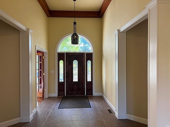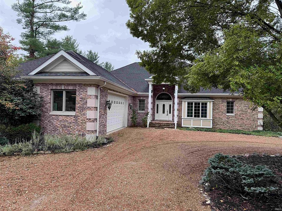 This exquisite custom-built ranch with a walkout basement is nestled on a secluded 2-acre oasis, just minutes away from everything, including Purdue University. This home has been meticulously designed for both entertaining and comfort. Upon entering through the front door, you are immediately greeted by an inviting foyer that leads to an expansive great room with beamed, cathedral ceilings and an adjoining formal dining room. The chef's dream kitchen boasts abundant custom cabinetry, a spacious island with a granite countertop, tile backsplash, pot filler, range hood, and stainless steel appliances. You can also enjoy the cozy ambiance of the hearth room/den, where built-in bookshelves flank the wood-burning fireplace. Additionally, a beautifully lit home office, which could easily serve as an extra bedroom, is attached to a full bath and an additional bedroom. The primary bedroom offers stunning views of the property and features an enormous walk-in closet, an ensuite bath complete with a custom vanity, a generously sized jetted tub, and beautifully tiled shower. For relaxation, step onto the charming screened porch and take in the scenic beauty of the expansive backyard. Descending to the lower level, you'll discover a spacious living area with a wood-burning stove, bedroom with daylight windows, full bath, and ample closet space. The property also includes an oversized garage, large mudroom with tons of storage, a deck off the kitchen, utility shed, and professionally maintained landscaping, all on your very own piece of paradise!