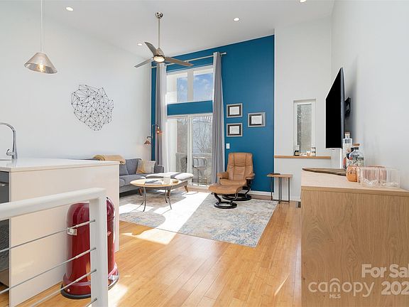 Enjoy a private, attached garage with ample storage and large bonus room on the lower level serving as an office or bonus room with a covered back porch. Ascend the steps in the entryway to your main level boasting beautiful 13' vaulted ceilings with an open floor plan, large windows letting in natural sunlight and a private balcony to enjoy the fresh air. Down the hallway is the primary bathroom and large primary bedroom with walk in closets. Truly a unique property in an unbeatable location in one of the most desirable and artistic neighborhoods of Charlotte!