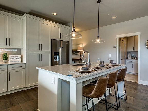 Open Great Room with Gas Fireplace Kitchen Island with Bar Seating and Dining Area Master Suite with Walk-In Closet and Double Vanity Sinks Covered Front Porch and Back Patio Laundry room access from garage