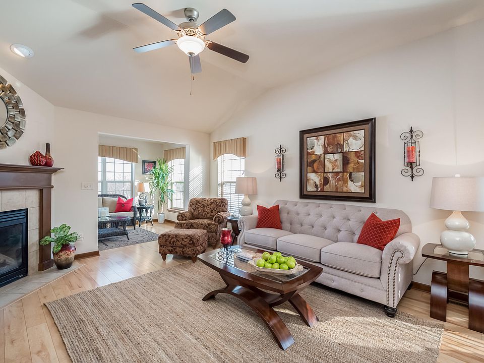 Gently waving prairie grass outside your windows w/picturesque views of the Fox River nature conservancy give added value to this gracious sun-filled condo. The side-by-side ranch features spacious split bedrooms with wood floors in all common spaces! Gas fireplace, vaulted ceilings, stainless steel appliances with upgraded Kitchen cabinetry adds a touch of elegance to this open concept floor plan. Downstairs offers a full walk-out Lower Level with patio in addition to full windows and rough plumbing for future Bath & Bedroom expansion. Attached 2 car Garage with an easy walk to the Fox River Park including bike trails, canoe drop, fishing, kids play area and plenty of space to restore your pioneering spirit.