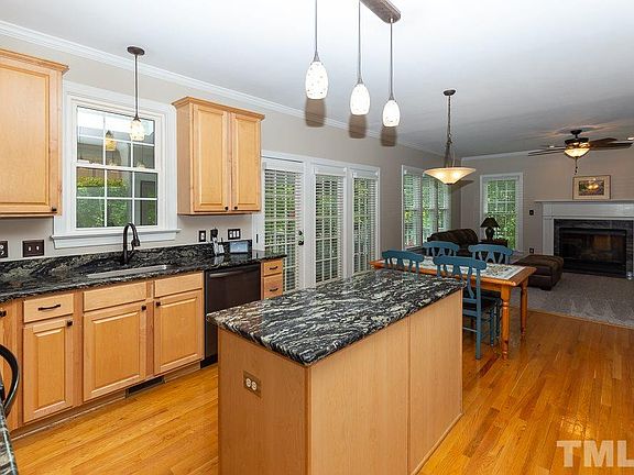 Beautiful home on private acre+ lot w/ screened porch, deck, fire pit on paver patio w/ fenced yard. 1st floor master opens to screened porch, kitchen w/new appliances granite counter tops & pantry! 4 bedrooms upstairs w/Jack & Jill bath, bonus, & hall bath too! Rec room has built in shelves & surround sound. Tons of storage throughout! New windows 2018, Roof 2018, HVAC 2012 Trane 2016, Sought after neighborhood, great schools! Close to 540, Brier Creek, 40. Wonderful yard to play, relax, & watch nature.