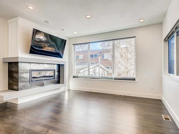 Amazing Urban Contemporary Townhome in the upscale Jefferson Park neighborhood. Built in 2015, this modern Townhome boasts three bedrooms, four bathrooms, brand new hardwood floors, new carpet, new interior paint and an amazing rooftop deck with fantastic views of the City and Mountains. Upon entering, the lower bedroom with bath makes an ideal office or guest bedroom. Upstairs features an open and flowing floor plan with new hardwood flooring throughout and the spacious Living Room, Kitchen and Dining area. Stunning Quartz countertops and Waterfall Kitchen Island, soft close drawers and cabinets, Stainless Steel Bosch appliances, oversized windows providing great natural lighting, cozy gas fireplace and covered grilling balcony with natural gas hook up. The 3rd level features a large second bedroom with ensuite bath as well as the spacious Master Bedroom with walk-in closet and beautifully designed 5 piece Master Bath. Finally, another level up, enjoy the best of urban outdoor living on your private Rooftop Deck with stunning views of the City, Mountains & Broncos Stadium. Huntingtonâs rooftop decks have a staggered design for optimal views & privacy. Pre-plumbed for hot tub & grill. Walk or bike to nearby shops, restaurants, Jefferson Park, Downtown Denver & Broncos Stadium. No HOA, approximately $100 per unit monthly fee for water, snow removal and grounds maintenance. Great opportunity to own in the Hot Jefferson Park neighborhood!