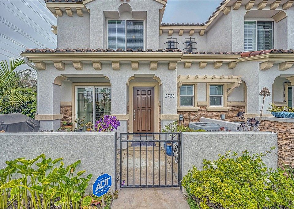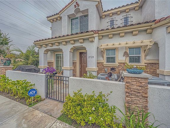 Welcome to a beautiful 2020 built condo in West Anaheim located near shopping centers, amusement parks and freeways. The common area consists of a luscious green colorful landscape. A 2-level 3 beds 2.5 baths END unit was the model home with many upgrades. Entry to a spacious living/family room and 1st floor with wood look laminate flooring, recess lights, custom draperies and blinds. A dark gray tiles gas fireplace radiates warmth throughout the living/family room. The dining area with glimmering lights next to the kitchen. The kitchen consists of white soft closing cabinets, quartz countertop, KitchenAid stainless appliances, brass faucet and dual stainless sink. A wood staircase to the second floor, hallway; recess lights, wood flooring. The main bedroom suite with recess lights, custom drapes, wood look vinyl laminate flooring, walking closet through the master bath; quartz countertop with dual sink, modern design tiles in separate shower stall, separate toilet area and custom selves in the walking closet. A glass door to the laundry room and white cabinets. The 2nd bathroom; quartz countertop, dual sink, white cabinets and shower tub. Bedrooms 1 and 2 have recess lights, upgraded carpets and blinds. A tank-less efficient water heater in the clean 2 cars attached garage. HOA is low at $191 monthly.