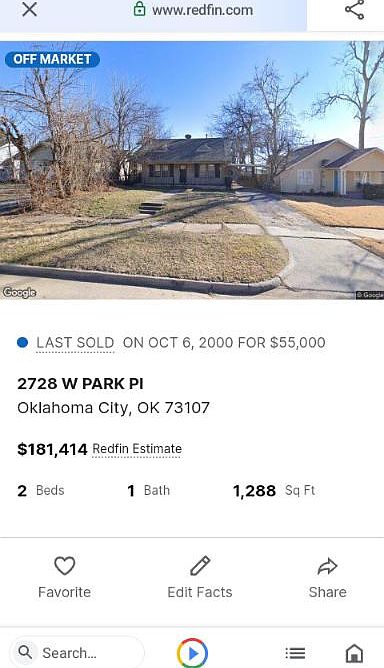 This 1288 square foot single family home has 3 bedrooms and 1.0 bathrooms. This home is located at 2728 W Park Pl, Oklahoma City, OK 73107.