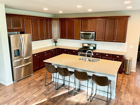 Perched in Aurora's Southshore community, this home is a resplendent modern oasis w/ an inimitable indoor-outdoor feel. The facade + front porch exude curb appeal + lead to a pristine main level in a desirable open layout + lined w/ luxury vinyl plank floors. The kitchen is welcoming + immaculate w/ granite countertops, stainless steel appliances, rich cabinetry + island w/ stool seating. The living room is anchored by a gorgeous fireplace + mantle + the dining area boasts direct access to the back patio. The lush backyard includes a wood pergola + seating area an ideal venue for enjoying views overlooking an easement + walking trails. A drop-down screen on the front door amplifies the outdoor appeal. Upstairs are four spacious bedrooms, including a primary w/ radiant bathroom. The laundry room adds ample convenience + the unfinished basement is ready to be customized. Add in the abundant sunlight + luxurious finishes throughout + you have a special property not to be missed. Neighborhood amenities include two pools (one overlooking the Aurora reservoir + another pool with splash pad + slide), numerous parks + miles of walking trails, and an off leash dog park. The community hosts movie nights, food truck nights, holiday parties with visits from Santa + the Easter Bunny + has two clubhouses with fitness centers + fitness classes. Schools: Cherry Creek School District - Altitude Elementary, Fox Ridge Middle School, and Cherokee Trail High School Shopping: Southlands Mall (AMC Theater, Lululemon, Nordstrom Rack, TJMaxx, Barnes & Noble, Dick's, Sam's Club, Cafes, Restaurants, and a farmer's market during the summer) Groceries: King Soopers (Kroger brand, 5 min drive) & Walmart (7 min drive) Owner pays for monthly HOA fee, trash, seasonal lawn aeration/fertilization, and seasonal sprinkler system maintenance. Renter is responsible for gas, water, electric, lawn maintenance, snow removal, and cable/internet (if desired). 12-month lease minimum. Last month's rent due at signing. No smoking allowed. Pets are negotiable, based on breed and weight of pet, at landlords' discretion. Pets must meet the following requirements: up-to-date on vaccinations required by state law, healthy, free of any communicable infections or any parasites such as fleas, clean and well groomed, house-trained, and are obedient, well-socialized and with no history of biting, excessive barking, chasing or aggressive behavior. A one-time refundable pet deposit of $300 will be due at lease signing, and a pet fee of $50 per month will be added to the monthly rent.