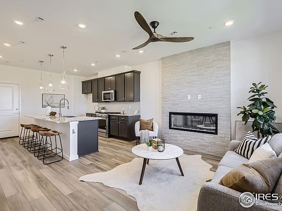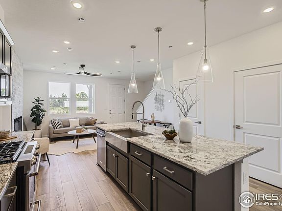 This is a Move-in Ready home! This home features a contemporary layout with luxurious finishes including an Arctic White grand kitchen island, upgraded soft-close Navy cabinetry, and beautiful tile accents throughout. Enjoy cooking in your stunning kitchen featuring a designer Backsplash and Stainless-Steel Appliances. Relax in your spacious primary suite, complete with an elegant master bath showcasing premium tile work and modern fixtures. This townhome features walk-in closets in each bedroom, 9' ceilings and great lighting! Located on the Southwest side of Longmont with easy access to shopping, restaurants, Boulder and 1-25! Mountain Brook offers outstanding community amenities, highlighted by a beautiful community center with a resort-style pool, workout area, Pickleball courts and a beautiful outdoor patio with a firepit! Embrace a lifestyle of luxury, convenience, and natural beauty. Welcome home to Mountain Brook! Be sure to ask your sales agent about current lending incentives!