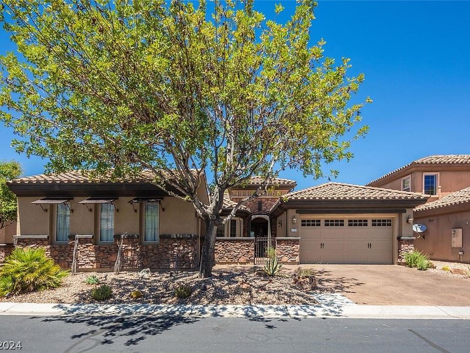 This luxurious home in the exclusive Club at Madeira Canyon community is ready for you to move in! Mountain views from every window on the rear of the house. Gourmet kitchen including dual convection ovens and a warming drawer. Primary bedroom is separate from the other bedrooms with a private door to the backyard. Newly renovated primary bath. Primary closet recently refinished by California Closets. Private backyard with a covered patio and a custom fireplace. Professionally designed desert landscaping is low maintenance and drought resistant. Solar panels (fully owned with 24 years on the warranty) & ceramic window coatings keep utility costs around $10/mo. Guard gated community offers pool with cabanas, business center, tennis courts, fitness center, community activities and so much more.SIDS/LIDS & Solar are fully paid off!