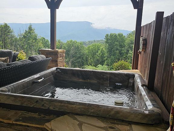 Mountain luxury solid log cabin easily accessed via county road in heart of Wears Valley. Only minutes to action-packed Pigeon Forge. Is currently second home only but estimated gross annual income is $100k+. Private gate. Concrete driveway. Solid log home built to withstand the test of time. Reach out and touch Cove Mountain and the mountains of the Great Smoky Mountains National Park. Gathering area features soaring wood ceilings and windows to the mountains, stars, sun, and moon to enjoy life 24/7. Custom stairway. Hardwood floors with NEW reclaimed barnwood in all bedrooms. Master bedroom on main level with doors to deck. En suite bathroom includes whirlpool tub, double vanities located on a stone wall, walk in shower, as well as walk-in closet. Kitchen includes all appliances with a porcelain farm kitchen sink as well as a walk-in pantry. Adjacent to kitchen is laundry room, with door leading to two-car garage. Garage is fully finished and if not needed as a garage, could easily be converted to gameroom (plumbing accessible to include another bathroom). Upstairs includes two bedrooms and another full and spacious bathroom. Outdoor covered entertainment and living area is spectacular, including stone fireplace, kitchen with BEARPROOF refrigerator, icemaker, sink, ceramic grill in addition to gas grill, and outdoor tv. Hot tub is perfectly situated to enjoy the panoramic mountain views. And for your FURRY friends, enjoy the fenced-in area with swing and fans included! After viewing all this beauty, meander up the ''Stairway to Heaven'' to be greeted by an even more spectacular view of the Smoky Mountains.