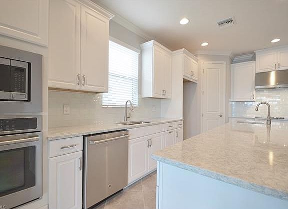 Here is a BRAND NEW, highly sought after Sandbar model in final phase of Sandoval. Home was completed just a few weeks ago, and now ready for new owners. Home features UPGRADED GOURMET KITCHEN with GE Café Stainless Steel Appliances, WALL OVEN & MICROWAVE, 36" COOK-TOP and Stainless Steel HOOD with outside exhaust. Other upgrades include, 42" WOOD CABINETS with Crown Molding, ROLL-OUT Shelves in base cabinets, LEVEL 5 QUARTZ Counter tops, TRASH/RECYCLE pull out cabinet, LARGE island with tons of storage with PREP SINK with disposal and SUBWAY GLASS TILE kitchen back splash. The home also features CROWN MOLDING throughout main living area, TRAY CEILINGS with CROWN MOLDING, Crystalline Full Light Front Door, UPGRADED PORCELAIN TILE, 2" Blinds, BRUSHED NICKEL FIXTURES, 8' DOORS throughout, FRENCH DOORS to Den and much, much more. Outside you have an UPGRADED OVER-SIZE (17x25) Lanai with BRICK PAVERS, plumbed for an OUTDOOR Kitchen and pre-wired for Wall Mount TV. All this with a 3 CAR GARAGE acrylic sealed garage floor and very nice LAKE VIEWS! You don't want to miss this one!