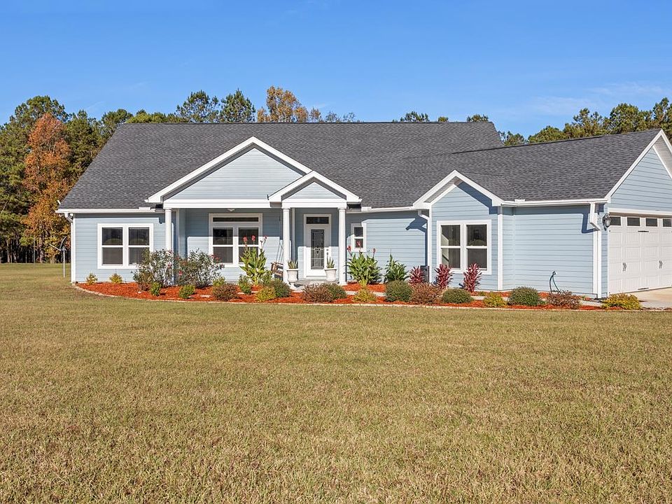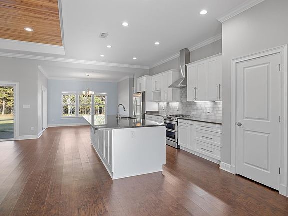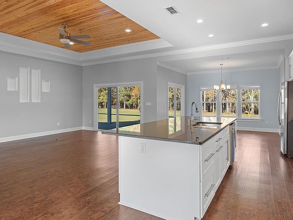Don't miss this incredible 2019 custom built home with split floor plan! Cook in style in the beautiful kitchen which features full stainless steel appliance set including a Gas oven, granite counter tops, and expansive island with bar seating. The living room is crowned by a stunning wood tray ceiling and has custom decorative wall inlays. Its French doors open to the screened-in patio. Rest easy in the master-suite which boasts a tray ceiling with recessed lighting and opens to a MASSIVE bathroom with not one but TWO walk in closets, a zero-threshold shower with dual shower heads, and dual vanity with granite counter tops and undermount sinks. This home sits on just shy of 17 acres.