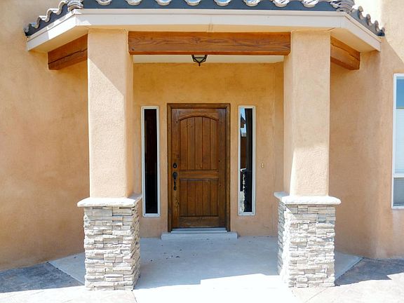 Quality abounds in this custom built "Ulrich" home.Attention to detail throughout. Gracious courtyard entry, pleasant foyer, informal dining space, greatroom with wood ceilings & vigas & a classic kiva fireplace! Open kitchen with island, granite countertops, knotty alder custom cabinetry, pantry and stainless steel appliances! Separate service room with custom cabinets. Generous master suite with beamed ceilings! Lavish master bath with his-n-hers vanities, oversized tub, separate shower and large walk-in closet! Good sized secondary bedrooms with Jack-n-Jill bath! Designer fixtures and window coverings, sky lights, alarm system, nichos, water softener and more! Outdoor fireplace and oversized covered patio! Well appointed 3 car garage w/ custom cabinetry & automatic openers.
