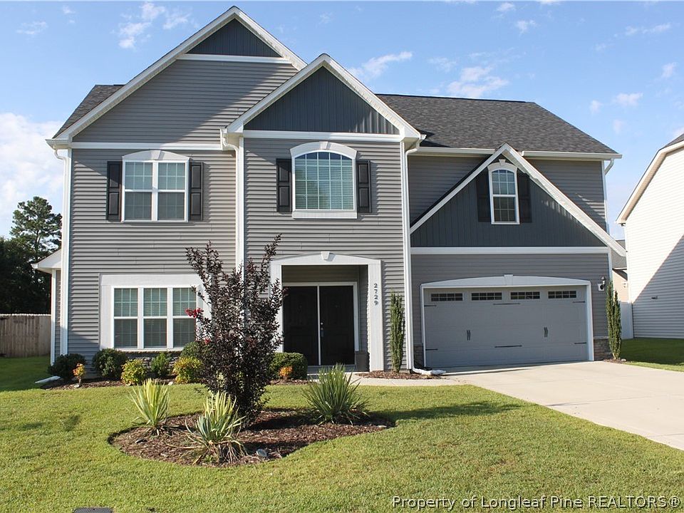 Five year young, one owner home located in a quiet neighborhood within the Jack Britt High School District. Double door foyer makes moving in much easier. Large Great Room with electric fireplace and built in shelves. Kitchen is open to Great Room and has a wonderful center island, tons of granite counter space, tile back splash, staggered wood cabinets, attractive appliances, pantry and a spacious eating area. Access to the covered patio is just off the kitchen and the powder room. Upstairs are four bedrooms, 3 full baths including one set up as a Jack/Jill bath between two bedrooms and a bonus room. Master bath is very large with a garden tub, nice size separate shower, dual sink vanity, two linen closets and toilet room. Walk-in closet in the master is very big and two of the guest bedrooms have walk-in closets. This one is worth your look.