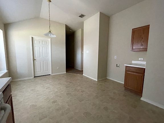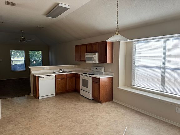 This charming single-story home features a spacious, open floor plan with three bright bedrooms and two full baths. The cozy living area flows into a well-equipped kitchen with appliances, ample cabinet space, and a breakfast nook. The generously sized bedrooms have large windows and ceiling fans, while the master suite includes a walk-in closet and ensuite bath with a sink and a shower and tub combo. Outside, enjoy a private, fenced backyard perfect for gatherings or relaxing. The low-maintenance yard and attached garage offer convenience and storage. Ideal for first-time buyers, small families, or those seeking a peaceful, friendly community.