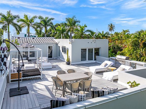 Splendid Mediterranean villa on prestigious Lower North Bay Road, walking distance to Sunset Harbour. Fully secluded with privacy hedges and tropical landscape, this enchanting home features serene pool area and a huge rooftop with summer kitchen offering quiet enjoyment and entertainment. Inside, stunning original details such as wide arched doorways and wood floors seamlessly blend with modern upgrades, including gorgeous kitchen and luxurious baths. Sunlit living areas, formal dining, media room, and 5 large bedrooms with 6.5 baths make this home perfect for those seeking luxury living in a prime location. Gated, with converted garage and driveway, located minutes to beaches, golfing, dining, entertainment, schools, Lincoln Rd, and more.