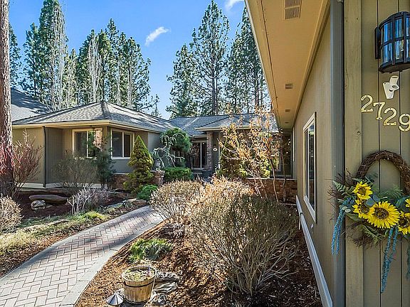 Nestled in Bend's premier golf community of Awbrey Glen, you will find this spectacular single level home that backs to the 8th fairway & views of the pond. As you walk up the paver walkway & enter the home, you will notice the rich built-in cabinetry, gas fireplace & vaulted ceilings with skylights through providing optimal natural light. The chef's kitchen is open to the great room & features granite counters, Jenn Air 6 burner gas cooktop, a large island and beautiful hardwood flooring. In the great room you will enjoy hosting in the wet bar with plenty of seating to watch the big game & includes built-in wine refrigeration. This home also features an office, spacious sunroom & a large laundry/mud room. The primary suite boasts a jetted soaking tub, tile shower double vanity and fireplace. The lush backyard boasts an expansive patio with hot tub, water feature, mature landscaping and a golf cart garage! HOA Amenities include the pool, walking trails, clubhouse, tennis courts & more!