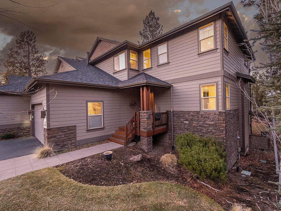 LENDER CREDIT AVAILABLE—REACH OUT FOR DETAILS! Welcome to this beautifully maintained townhome, part of the sought-after Awbrey Glen community, ideally located on a spacious corner lot in a desirable Westside Bend neighborhood with easy access to Awbrey Glen Golf Club. The home offers two primary suites—one on each level—along with an additional bedroom and a generous loft with built-ins and desk space. The great room features vaulted ceilings, a raised-hearth gas fireplace, and custom cabinetry. The kitchen was tastefully remodeled in 2022 with granite countertops, a pantry, and refinished hardwood floors. Enjoy peace of mind with a new roof (2023) and fresh exterior paint (2025). Step onto the back deck for tranquil views of Quail Park. The HOA maintains the exterior—including roofing, painting, and landscaping—making this the perfect lock-and-go home. Furniture is negotiable, offering flexibility for the new owners. A rare blend of comfort, convenience, and location!