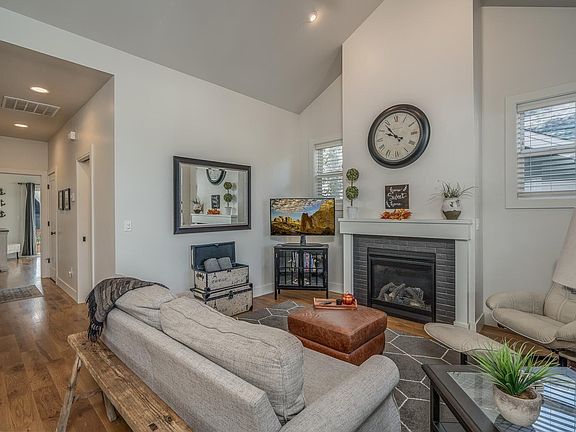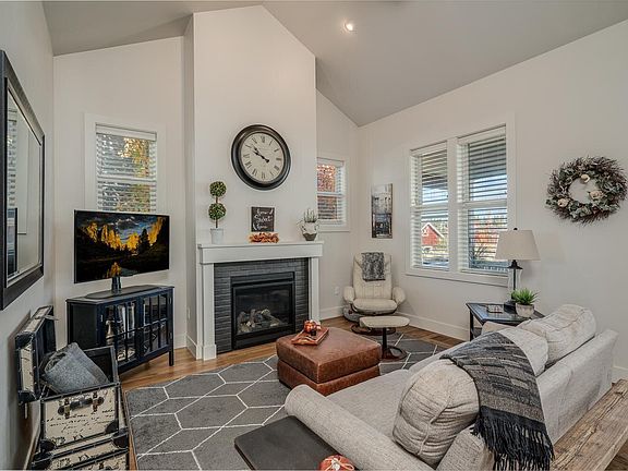 Many upgrades: instant hot water, quartz countertops, vaulted ceilings, hardwood floors, soaker tub, gas stove, stainless steel appliances, open concept living/dining/kitchen, long driveway for extra car parking. One of the best features of this home is the large enclosed front porch. The Owner has enjoyed many parties with friends here. Plus it has a lovely fenced-in backyard/ garden. Great place to enjoy morning coffee. Easily walkable to The Grove, restaurants, shops, Discovery Lake, dog park, hiking trails. This home overlooks a private HOA area available only to Farmstead 12 homeowners with firepit, bbq, hut/table & large lawn. Enjoy dinner outdoors, let the kids or dogs run on the lawn or enjoy a glass of wine by the firepit.