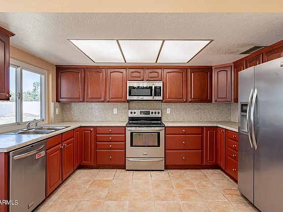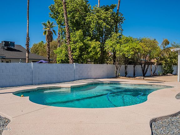 Beautiful Mesa home close to many wonderful conveniences. Over 11,000sqft lot, N/S exposure with backyard facing North, private swimming pool with 2016 sandstone finish and variable pump/filter, freshly-painted, spacious kitchen with window over sink to backyard, 2016 dual pane, low-e, vinyl frame (Renewal by Andersen windows), 2016 York A/C unit with Honeywell programable thermostat, newer 2021 Roof, tile flooring throughout with carpet in the bedrooms, large primary suite comes complete with an en-suite bathroom and double sinks. Close to great restaurants, freeways, hospital, and schools.