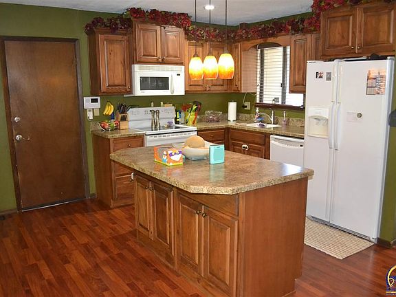 Stunning hearth kitchen in this 3 Bedroom rancher in Washburn Rural. 1 full & 1 1/2 bath with an additional 1/2 bath that could be completed in the basement. On corner lot. Numerous updates within the last several years including flooring, carpet, master bath, glass in back porch, basement bath, paint, light fixtures, custom cabinets, wood blinds. Newer sewer line, HVAC and AC. Unfinished basement adds more potential room. Two Car garage with additional parking pad.