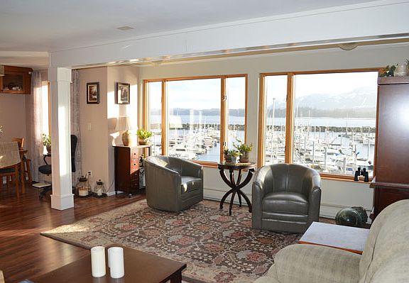 Updated and comfortable two-bedroom waterfront condo in the Harbormaster Condominium complex. Fantastic views of Bar Harbor, Tongass Narrows and surrounding islands give you plenty of reason to stay home and enjoy the view. Updated with granite counters and back splash and stainless steel appliances. Reserved covered parking. The Harbormaster has a reputation for quiet living and good resale values. This unit is an excellent choice.