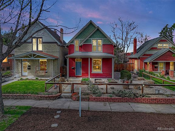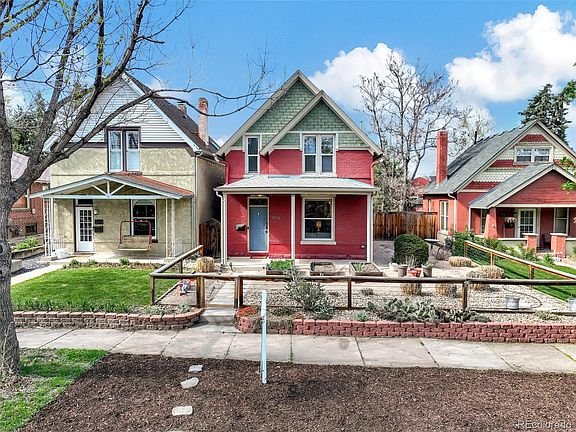 Indulge in the timeless allure of Potter Highlands with this charming brick Victorian nestled in the heart of Potter Highlands. Boasting 3 beds and 3 full baths, this home welcomes you with a spacious living area adorned with custom built-ins, perfectly blending storage and style. Upstairs, 2 bedrooms await, each with its en-suite bathroom, while the main level offers versatility with a third bedroom or office space. Original hardwood floors, trim, and railing evoke the home's rich character, complemented by a recently updated kitchen featuring new appliances and a subway tile backsplash. Oversized windows flood the space with natural light, creating an inviting ambiance. Recent upgrades include all new interior paint and carpet, a new furnace, and fully paid-off solar panels, ensuring both comfort and efficiency year-round. Outside, the fully fenced backyard beckons for outdoor gatherings, complete with a fire pit and gas line, while a two-car detached garage with a gardening room provides ample storage. Immerse yourself in the quintessential charm of Potter Highlands, where history meets modern convenience. Nestled within a quaint historic district, this home offers easy access to the vibrant culinary scene of LoHi and West Highlands. With fiber optic wifi enabled and convenient proximity to I-70 and I-25, commuting is effortless, whether by bike, bus, or foot. Potter Highlands showcases an array of architectural styles, from Victorian to craftsman, reflecting its rich heritage. Explore the bustling shopping district along 32nd Ave., from Clay Street to the heart of LoHi. Indulge in dining, shopping, and entertainment opportunities, just moments away from local favorites like Leever's Locavore, Bodega, and Spuntino. Experience the epitome of Denver living in this meticulously maintained Victorian home, where every detail reflects a commitment to quality and comfort. Schedule your showing today!
