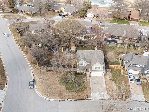 Updated 4-bedroom home in Jenks Schools on a spacious corner lot! This charming 4-bedroom, 2.5-bathroom home sits on a generous 0.31-acre corner lot, offering plenty of space inside and out. Conveniently located just minutes from Highway 75, Tulsa Hills shopping, and the Oaks Country Club, making errands, dining, and recreation a breeze. Step inside to brand-new engineered hardwood floors that flow through the main level, complemented by fresh interior paint and new carpet upstairs for a truly move-in-ready feel. The open concept living and kitchen area is perfect for entertaining, complete with a cozy fireplace that adds warmth and charm. The spacious primary suite is a true retreat, featuring a vaulted ceiling, a generous walk-in closet and an ensuite bath. All bedrooms are thoughtfully placed upstairs, providing privacy and a functional layout. Additional upgrades include added blown-in insulation for enhanced energy and efficiency. Enjoy the outdoors on the newly upgraded back patio, perfect for relaxing or entertaining.