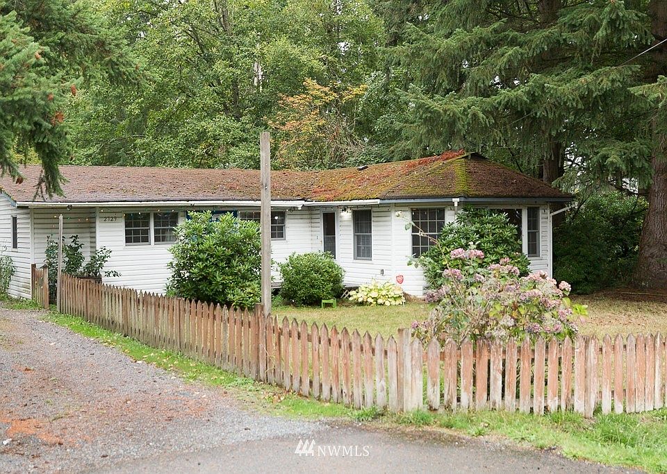 Great starter home or investment property. Lots of potential here, Open floor plan with Living and Dining area, wood windows, charming wooded lot. use your imagination and make this home sparkle again. Over half an acre with detached garage/shop. On Septic and sewer is available in the street