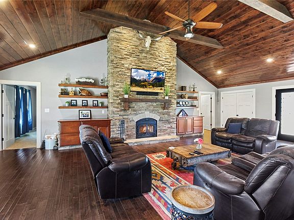 living spaces. Gather with loved ones around the wood-burning fireplace with stone surround, perfect for cozy evenings and