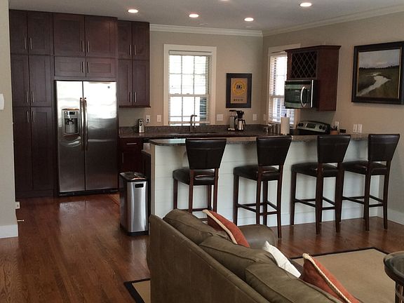Beautiful, clean, newly built 3 bedroom, 2 1/2 bath home on Coming St is within easy walking distance to Upper King and convenient to I26. This home features oak floors throughout, ceiling fans in each room, and faux wood blinds in each window. First floor has open floor plan with granite counter tops, stainless steel appliances, half bath, plus laundry room with washer and dryer included. Living room is comfortably appointed and features a large screen TV. Cable not included. Upstairs has 3 bedrooms, two full baths, plus a walk-in closet in master, and linen closet in hallway. This home is move-in ready, furnished with living room furniture, three beds, linens, and kitchen accessories. Keyless entry with security system available for a nominal fee. Driveway offers two parking spaces. Sorry no pets or smokers. Tenant responsible for all utilities.