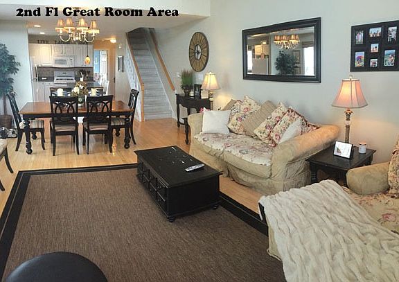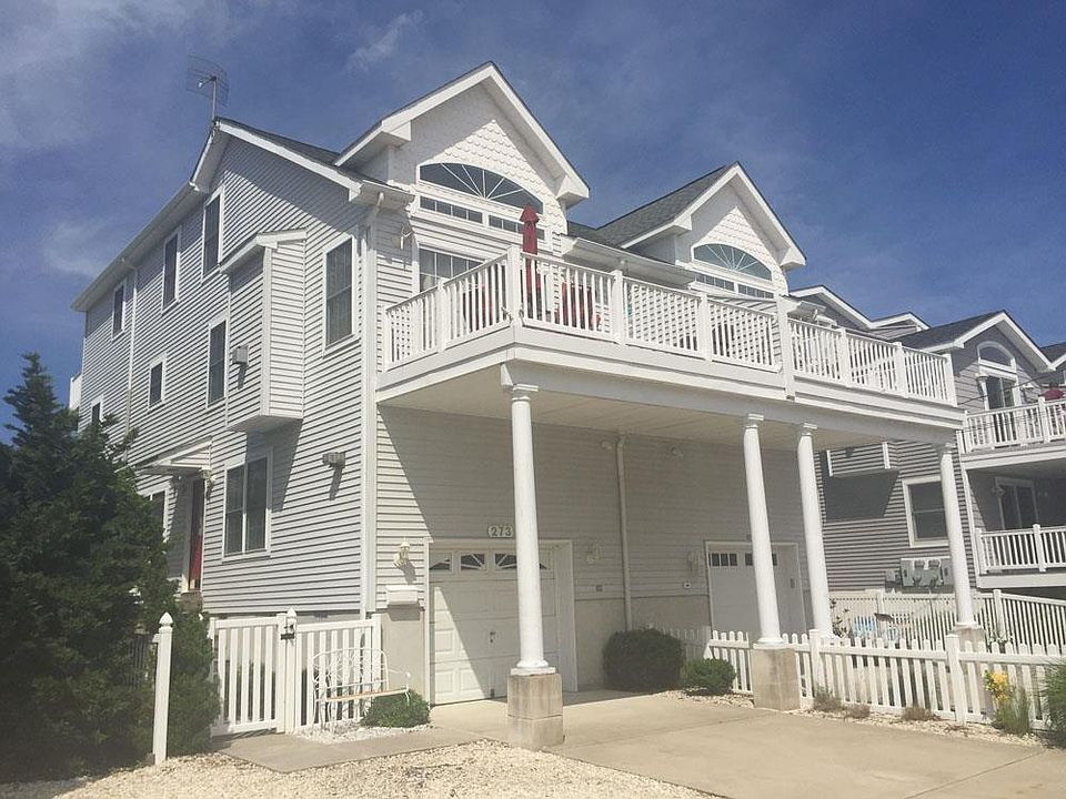 Three story spacious townhouse featuring 5/6 bedrooms and 3 full baths. Second floor provides open and airy living area with hardwood floors, cathedral ceilings, slider to deck and fire place. Living area easily flows into dining area with vaulted ceilings next to kitchen with modern white cainbetry, tiled backsplash, hardwood floors and center island. This floor also has one bedroom with private deck. First level has three bedrooms one of which is currently being used as a 1st floor family room that has access to the stoned rear yard patio area. Third level has two bedrooms one of which is the master bedroom. Each floor has one full hall bathroom. All bedrooms comfortably fitted with wall to wall carpeting, ceiling fans and tastefully painted. Fenced rear yard with area set up for outside leisure and a clothes line. Great investment opportunity with proven rental history. Centrally located being a short walk to a beautiful beach, town area and bay.
