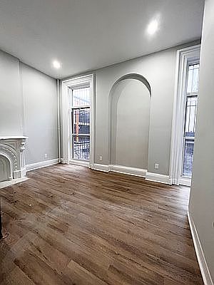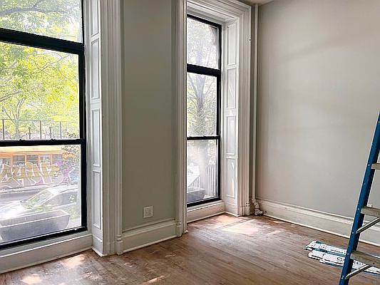 NO FEE PARLOR LEVEL TWO REAL BEDROOMS AVAILABLE IMMEDIATELY BRING YOUR DOG OR CAT OR BOTH. Total high end renovation just completed FLOOR TO CEILING in a classic Brooklyn brownstone with period moldings and details and 10 foot high ceilings. Sunny and bright floor-through super quiet with two large bedrooms at opposite ends, one front with window boxes awaiting your green thumb, the other rear, over-looking the garden. Over-sized 10 foot windows, each with transom windows above, an architects dream, on one of Brooklyn's most classic quiet tree-lined streets... Sunlight filters across the gleaming new floors, and Green Eco features abound, including fully electric heating with room- zoned climate controls and the 100% brand new stainless steel matching appliance group, including built in dishwasher and range-top vented microwave, with Benjamin Moore Designer White painted cabinetry, brushed nickel hardware and all backed with exquisite softly patterned Carrara marble backsplash and countertops. Separate walk in closet with French doors and additional overhead luggage or seasonal storage. Deco fireplace . Washer dryer in building. AC! The recessed energy efficient LED dimmable lightbulbs spread soft down-lighting throughout as you wish, each certified to last over 50,000 hours. Closets and storage abound and over 20 electrical outlets will make settling in and connecting your electronics a breeze. The windowed bathroom is a sanctuary of soft white Statuario marble tiles, featuring a custom oversized lux shower with brushed nickel hardware, Carrara Bubble-Round Mosaic tiles, and a full rain forest shower. Fort Green's is where Brooklyn Heights and Manhattan go to eat, and it's celebrated restaurant district is at DeKalb Avenue just at the end of the block. Chia Bueno's, Bittersweet and Walter's are neighborhood favorites, but they only scratch the surface of what has become one of New York City's finest neighborhood culinary destinations. At the border of Fort Greene and Clinton Hill, this "restaurant row" easily complements every budget and all tastes with an upbeat indoor/ outdoor neighborly New York City vibe. Or simply order in, everything from pizza to vegan to seafood and burgers will be delivered to your door in literally moments. Fort Greene Park is a short two blocks away, with its Farmers' Market, tennis courts, and well maintained smooth surface paths, and a multitude of quiet green and leafy dog friendly spaces. Slightly further is the BAM Cultural District, an ever-blossoming array of theatres, galleries, restaurants, two independent bookstores and Whole Foods market. It is there, at Barclay's Center, that you can catch a Net's game, or one of the many quick subways into Manhattan, while the G and C lines are even closer to home. Be the first to live and entertain in this top to bottom renovation. BROKERS CYOF. Showing by open house and appointment. Express application, easy showing, 12 month minimum lease, or longer lease term possible. (Also ask about nearby 2 BR apartment with outdoor space, coming soon.) Pets are welcome.