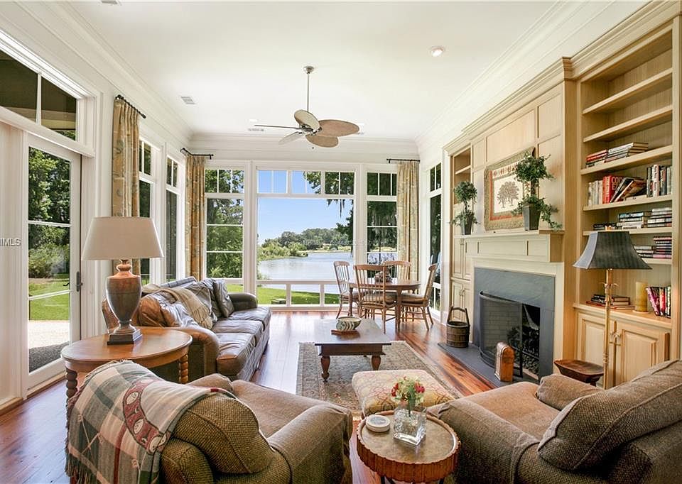 LONGEST VIEW ON LARGEST LAKE. 6-football-fields-long Hidden Lake scene. Belfair top-ten lot. Bluffton's biggest lake. Rows of tall windows capture a nesting sanctuary for blue herons, snowy egrets, rare wood storks & majestic eagles. A perfect home on a magical setting was constructed w/no expense spared: 200 yr old cotton-gin heart pine floors; showcase mahogany library w/fireplace; Ritz Carlton master suite; custom cabinetry. Open floor plan showcases 2 adjacent great rooms off kitchen. Each pampered guest enjoys a BR, BA & balcony adjoining private TV room w/refreshment center. Exceptional.