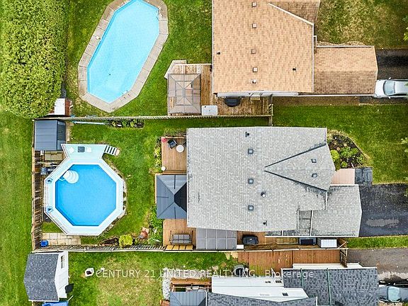 Welcome to this beautifully maintained 4-bedroom, 3-bath family home in Oshawa's sought-after Vanier neighbourhood, backing onto lush greenspace with a stunning Northern Catalpa tree that bursts into full bloom each spring. Enjoy nature at your doorstep with Limerick Park just steps away, and the Civic Fields and Recreation Centre nearby for endless outdoor activity. Inside, you'll find a spacious layout with all bedrooms conveniently upstairs, a bathroom on each level, and a bright bonus room off the front entry that's perfect as a home office, playroom, or cozy reading nook. The main floor features newer hardwood in the living, dining, and bonus rooms, while the upper level showcases stylish luxury vinyl throughout. Step outside and entertain with ease on your wrap-around deck, complete with two inviting gazebos, one with a retractable awning, plus a refreshing galvanized steel above-ground pool with a brand-new liner (July 2025) and heater (2023). Whether hosting friends or relaxing with family, the outdoor space offers endless possibilities. Nestled on a quiet dead-end court for added safety and peace of mind, this home also includes numerous updates: newer windows, front door, attic insulation, roof (2017), furnace and A/C with Enercare maintenance plan, gas BBQ hookup, and an upgraded breaker panel. The spacious lower level provides abundant storage, a 2-piece bath with potential for expansion, and room to customize as you wish. A truly family-friendly location, close to schools, transit, GO Station, parks, shopping, and easy access to Hwy 401 and 407, where convenience and comfort come together beautifully.