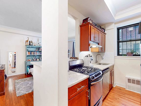 This one-bedroom layout feels like a charming little house. You'll enjoy high ceilings, crown molding, lots of natural light, and lovely hardwood floors throughout. The location is also key, directly across the street to Ft. Tryon Park and the 190th A train express station.