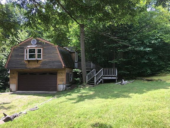 This special property features privacy, 23 wooded acres, a pond, brooks and multiple outbuildings. Main house has 4 bedrooms, 2 baths, 2 fireplaces, wrap a round deck, full walk out basement. Some of the amenities include double oil tanks, wood shed, double car garage with opener with a partially finished 20x26 room over it for office/studio/game room usage, an additional 17x15 garage with electricity for your boat or atv vehicles. Truly a unique property located in the east side of Becket. Minutes away from Center Pond for swimming and boating. Centrally located to Pittsfield, Lee or Westfield