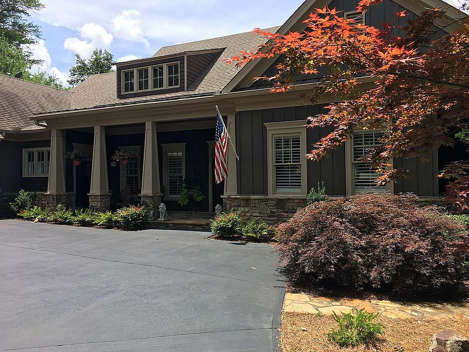 Custom build located on the most popular street in the Wildcat section. Designed for entertaining. Close to the North Gate entrance, shopping and restaurants. Walking distance to trails and dog parks and 5 minutes to the Wildcat pool and pavilion, new bocce ball courts, additional dog park and large playfields. Three natural stone fireplaces and oak hardwoods on main level with master suite including marble fireplace and jetted tubs plus addition guest suite on main level. Private with finished terrace level. Dedicated home gym, bar/kitchen on terrace level , custom office with built in oak shelves, 3 bedrooms and 2 full baths and storage. Two large screened porches, full sized front and side flagstone porches, 12’x30’ partially covered deck with custom roof, electric awning, outdoor wood burning fireplaces on main screen porch and family room, ceramic log fireplace in living room and master bedroom, jetted tubs in master and guest bedroom on main with stand alone showers. Main level bedrooms have private access to covered porches. Custom ceilings on main are 10’ plus with custom architectural features with open floor plan including dining room, living room, den and kitchen. Multiple entrances and exits on main. Ceilings are 9’ high on terrace level. Oversized two car garage directly connecting to mud room and laundry room. New roof. Recently refinished oak floors on main level. Built in shelves and cabinets in living room. Beautiful hardwood mountain ridge views in all directions. Level drive and professional landscaping. Extra cabinets, closet space and storage with dedicated wiring for extra/ fridge and freezer. Large unfinished storage area stubbed for future addition.