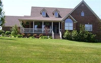 A beautiful brick ranch with wrap around porch and partially finished basement. Two driveways with a 2 car garage on main level and a 1 car garage in basement. Basement has a possible fourth bedroom. Three full baths, hardwood floors( the real kind).Gorgeous kitchen cabinets appliances stay,crown molding everywhere, pebble stone walk, front porch and porch steps. Views to die for all around this property with 1.63 acres. Pretty place and only 12 min to I75.