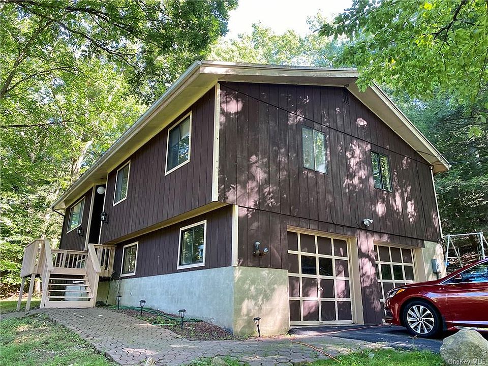 Private, serene, and surrounded with green! 3 bedroom and three bath Raised Ranch in Putnam Valley nestled on 1 acre of land. Upon entering you will walk into the large living room which boasts newly polished Chevron flooring throughout and north facing windows. Down the hall you will find the master bedroom with its en-suite bath and spacious closet. There are two additional bedrooms as you continue down the hall, and all of the bedrooms have been furnished with brand new carpeting. Make your way over to the dining area where there is room for any size dining table with room to spare. Adjacent to the dining area you will find the spacious eat-in kitchen with granite countertops, tiled backsplash, sleek wood cabinets, and stainless steel appliances, including a dishwasher, built-in microwave, and a wine fridge. In addition to the deck access via the kitchen, the dining area is equipped with sliding doors for a second exit point out to the extra large deck space where all of your deck furniture will fit, including any size grill that you d like to add to this space. As you come back to the side of the house after coming down the deck stairway (there are two stairways at the deck located on opposite sides) you will find the attached two car garage and drive-way which has enough space for an additional 4 or 5 cars. The lower level of the house is completely finished and the mechanical room has a state of the art washer/dryer for your convenience. There is a bonus room in the lower level as well - make it your home office, guest room, additional closet space, you name it! There is also a spacious family room in the lower level, which offers a wood burning fireplace for those cold NY winter nights.. A full bath makes this lower level complete and helps you make the most out of this great space. Located just minutes from the lake and all major shopping - this is one to come out and see!