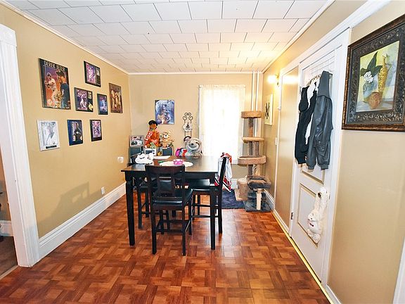 This large duplex with long-term tenants is now ready for a new owner! The downstairs unit features separate living and dining rooms, a heated bonus room converted from the enclosed front porch, a huge, sunny eat-in kitchen with original tin ceilings and trim, built-in storage/shelving, and separate exit to the driveway and yard. Two generous bedrooms and a full bathroom with shower and tub round out the unit. The upstairs unit also has both living and formal dining rooms, an efficient kitchen, full bath with shower/tub, and one very large bedroom, with a secondary smaller bedroom with large closet ideal for an office space, craft room, nursery, etc. All windows replaced in 2011 with higher efficiency vinyl. Partial roof replacement in the last year, as well as 3 years new boiler upstairs. Delayed negotiations on file - offers due January 16th at 6 PM.